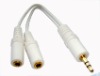 Cable Audio Lead (3.5mm Plug - 2*3.5mm Jack) Moulded Type Nickel or Gold Plated RoHS or Non-RoHS BC Conductor With or Without Al Foil Normal Cable Specification is (10/0.10mm)*2W+28/0.10mm)*2C, OD: 3+3mm OFC Various Length avaiable Cable specification upon customer's request.